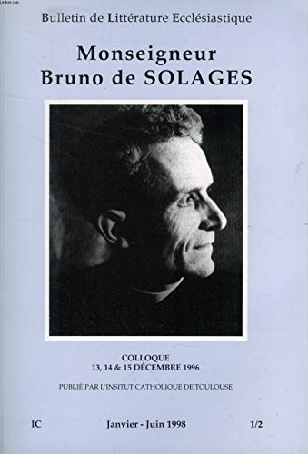 BULLETIN DE LITTERATURE ECCLESIASTIQUE, IC 1/2, JAN.-JUIN 1998, MONSEIGNEUR BRUNO DE SOLAGES, LE CHERCHEUR: MATHEMATIQUE ET EXEGESE (TIRE A PART) Livres en ligne.