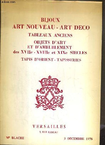 CATALOGUE DE VENTE AUX ENCHERES - VERSAILLES - BIJOUX - ART NOUVEAU - ART DECO - TABLEAUX ANCIENS - OBJETS D'ART ET D'AMEUBLEMENT DES XVIIe - XVIIIe - XIXe SIECLES - TAPIS D'ORIENT - TAPISSERIES - 3 DECEMBRE 1978. Description