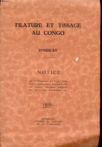 Download your book in PDF or ePUB format. You can read these on Mac or PC desktop computer, plus many other supperted devices. The free download for Windows or Mac OS take less than a minute to install over a broadband connection. Enjoy It !! FILATURE ET TISSAGE AU CONGO SYNDICAT : Notice sur l etablissement Belge d une industrie textile produisant avec des matiere indigènes des toiles sacs d emballage etc.. Info
